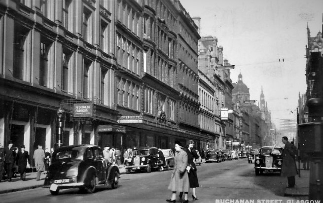 1966 saw me starting work, aged 17, as a junior sales assistant in the menswear department of an upmarket shop in Buchanan Street, Glasgow. For the princely wage of £5 10s 6d a week, I was to learn more about life working in that shop, from a man who would change my perception of myself and other people. He instilled within me the belief that no one was better than you. This was Mr Robertson, the senior salesman, who interviewed me initially for the position. Whilst I had no idea I was gay, he clearly did, possessing a ‘gaydar’ long, long before the birth of the internet dating site. He was 37, quite small, slim, bald, with slightly protruding front teeth, and wore thick horn-rimmed spectacles. He arrived for work drunk most mornings, having spent the evening before on a journey though the 1960s Glasgow gay scene. Starting at the cocktail bar in The Royal, he would then move onto Guys, or The Strand. He wore a leatherette coat, green corduroy trilby with feather, and a pair of leather driving gloves (he had neither a driving licence nor car and bussed it everywhere).